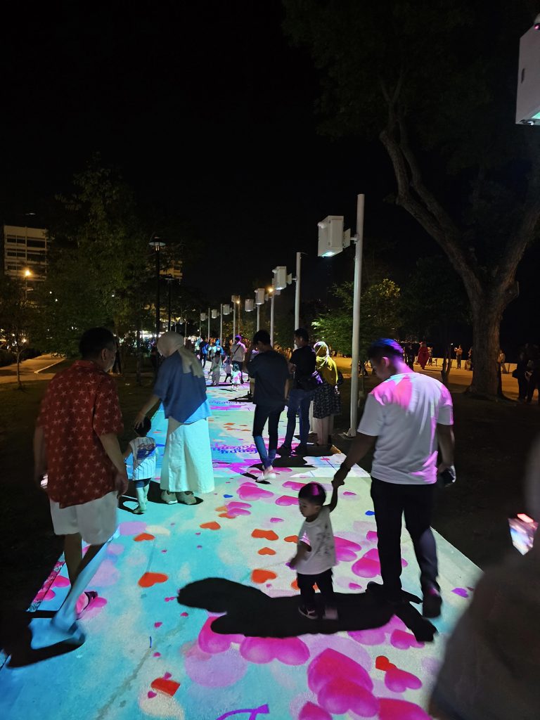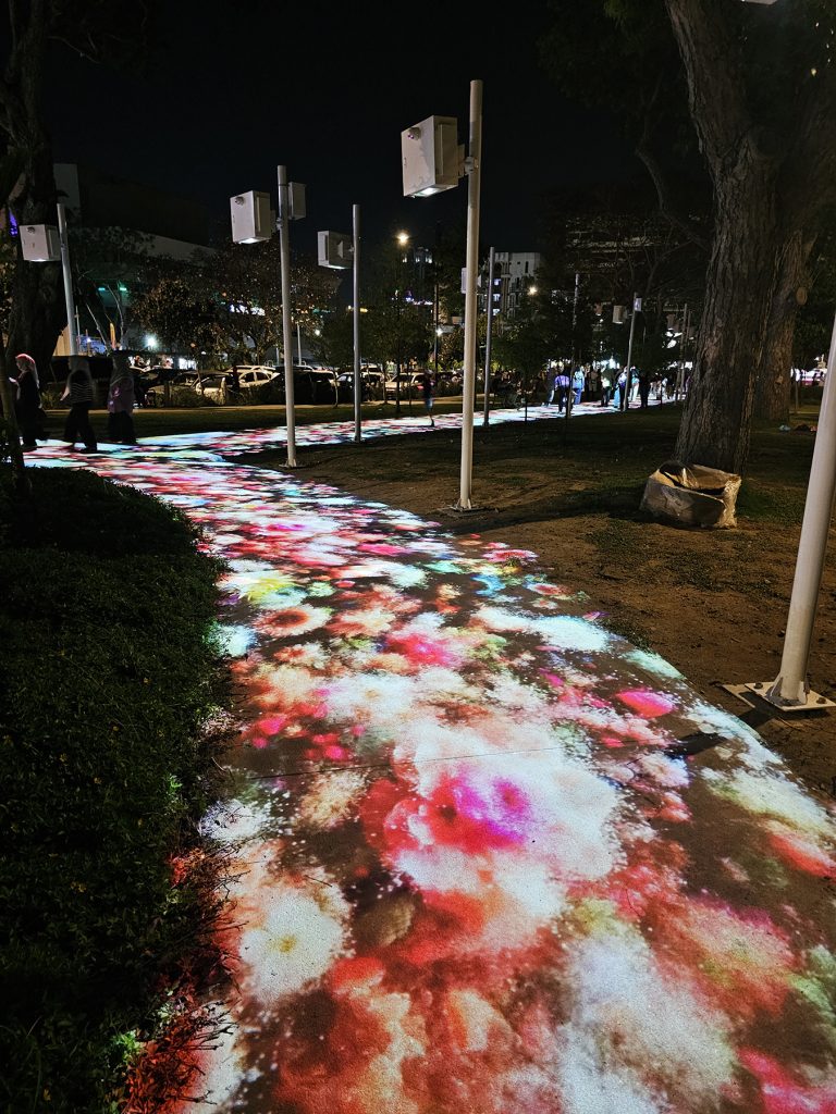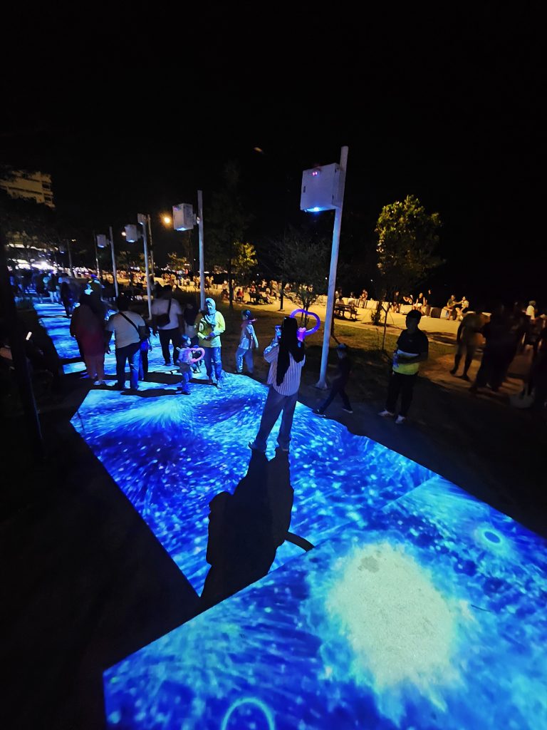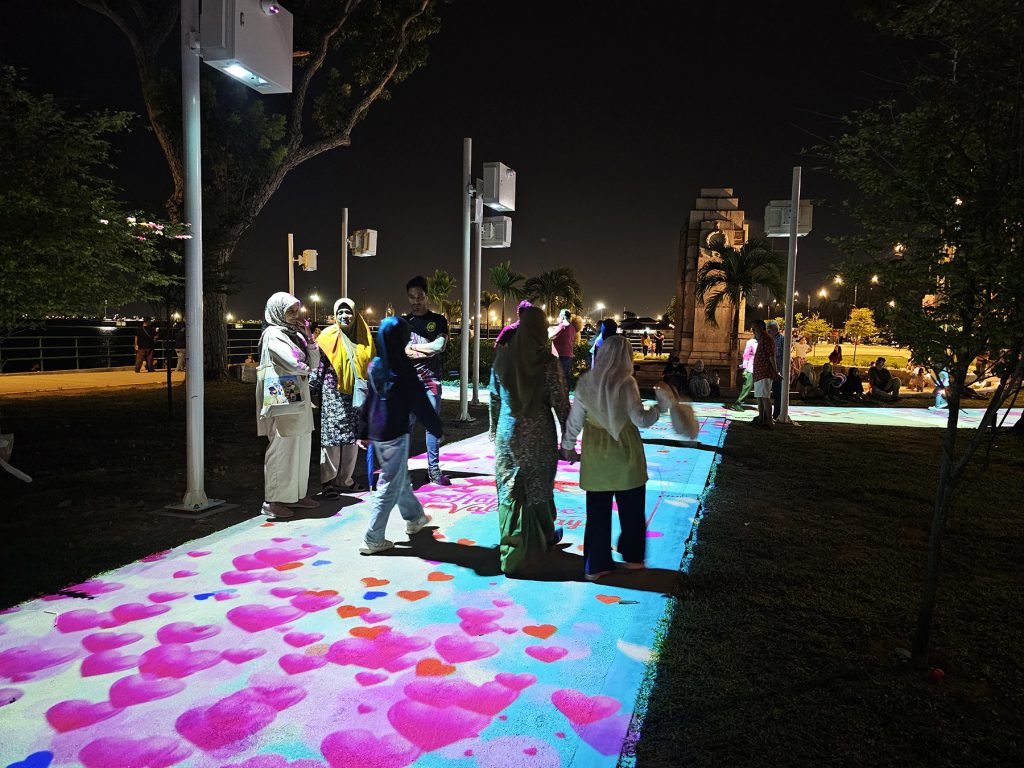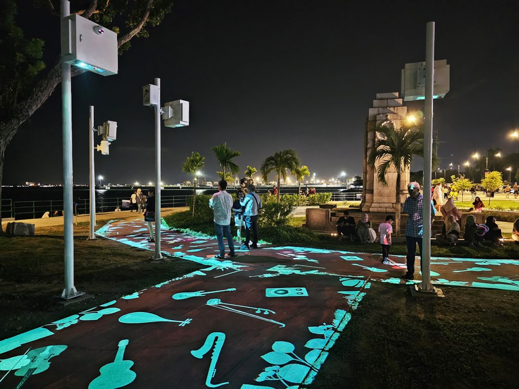 Colorful animated light projections illuminate the walkway at the Esplanade (near the coastal food court and Cenotaph area) each night.