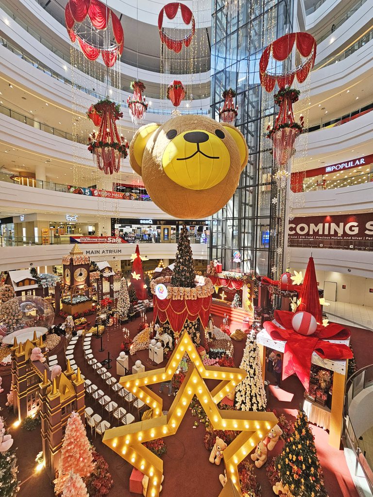 Design Village Penang transformed its open-air outlet mall into a festive “Jollylicious Christmas” setting with cheerful holiday decorations, including a dreamy pink-themed display and seasonal icons like gingerbread figures. Shoppers can soak up the festive mood while enjoying seasonal promotions, photo spots, and family-friendly attractions such as train and carousel rides that can be redeemed when you spend a certain amount at the mall.