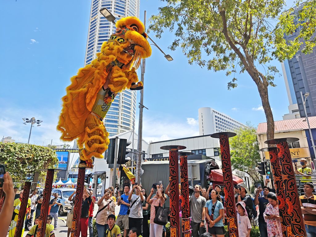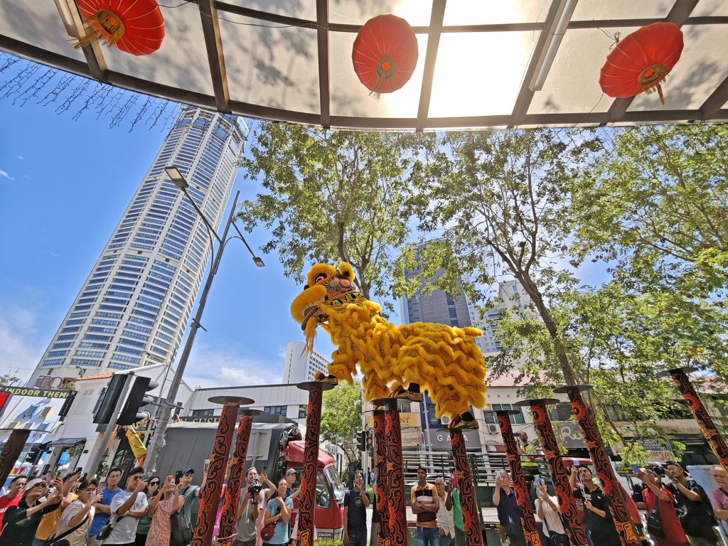 Lion dance on poles performance for GAMA Departmental Store during Chinese New Year opening.