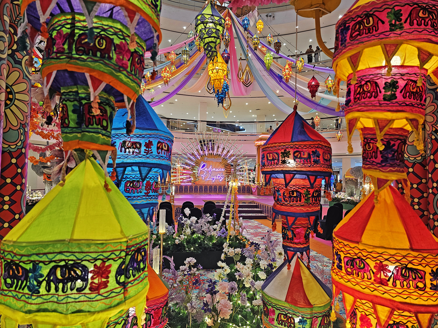 Colorful and beautiful display of Deepavali decorations in Gurney Plaza shopping mall.